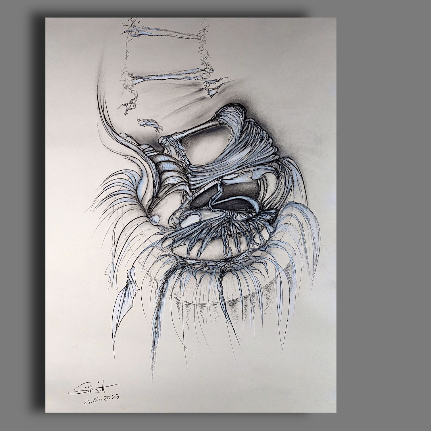 Bei den folgenden großformatigen Skizzen zeigt sich deutlich eine Entwicklung zur nächsten Phase.